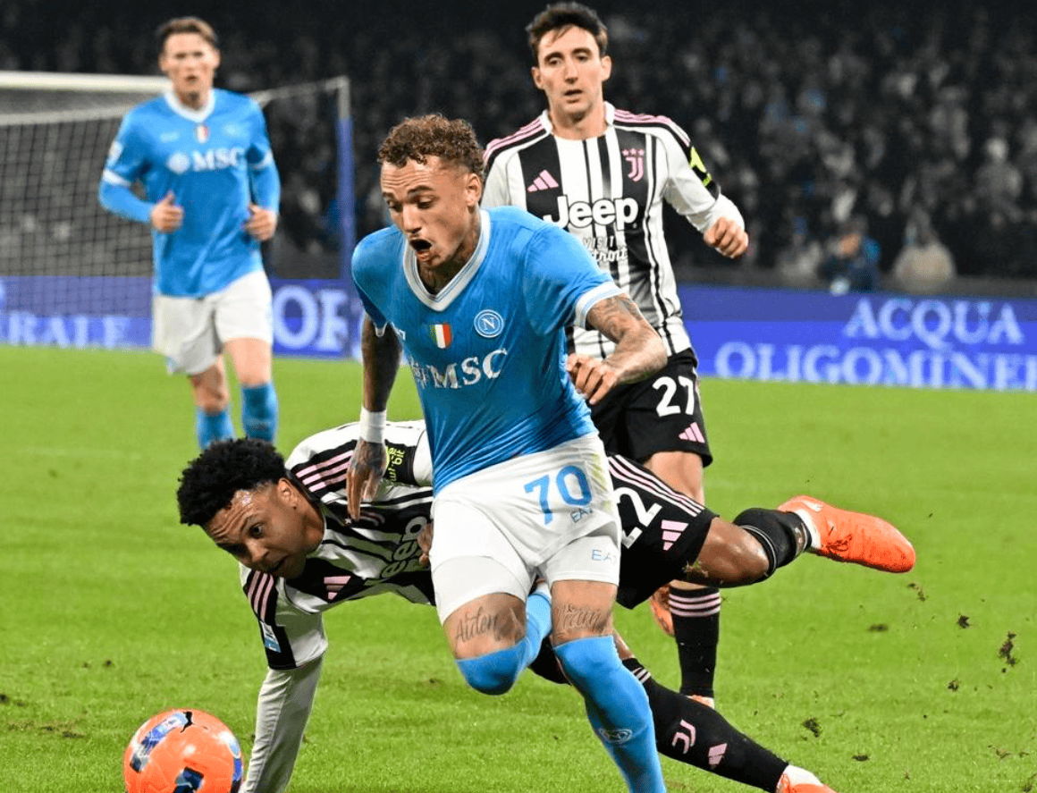 本场比赛中,那不勒斯选择了343阵型。内雷斯、霍伊伦和诺阿-朗组成了锋线三叉戟。中场方面,迪洛伦佐、埃尔马斯、麦克托米奈和奥利韦拉四人共同出击。后防线则由比克马、拉赫马尼和布翁焦尔诺三名中卫构成。门将位置由瓦尼亚-米林科维奇-萨维奇担任,而波利塔诺和斯皮纳佐拉则坐在替补席上待命。比赛刚开始不久,麦克托米奈便在门前抢点,试图头球攻门,但可惜顶偏了。第7分钟,那个梦幻开局终于到来!内雷斯在禁区右侧送出横传,霍伊伦及时跟进,在门前包抄射门成功,球应声入网,那不勒斯1-0领先!第20分钟,尤文图斯的伊尔迪兹尝试一脚远射,但将球踢飞了。6分钟后,迪洛伦佐的一记头球攻门被尤文门将神奇化解。紧接着,凯利也在门前浪费了一个不错的机会。上半场临近结束时,麦克托米奈再次头球攻门,但不幸击中立柱。半场结束,那不勒斯以1-0领先。下半场易边再战。第49分钟,霍伊伦突入禁区,大力抽射,可惜被门将扑出。6分钟后,麦克托米奈的一记任意球射门偏出。第59分钟,尤文图斯终于扳平了比分。伊尔迪兹在禁区右侧小角度低射远角,球进了,1-1!然而,第78分钟,那不勒斯再度领先!还是霍伊伦,他在门前争顶头球,将球顶进网内,梅开二度,2-1!比赛进入最后时刻,尤文图斯的热格罗瓦有机会绝平,但他的射门被门将成功没收。最终,那不勒斯以2-1战胜了尤文图斯。